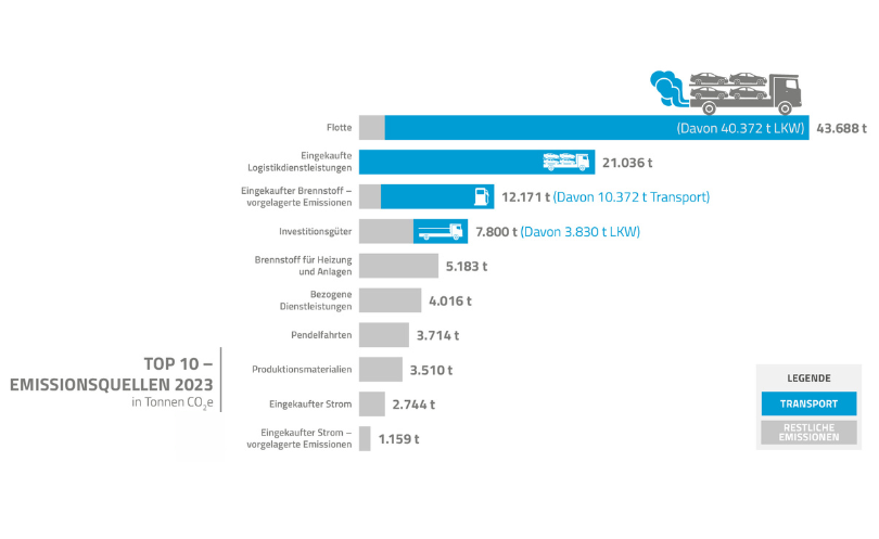 Für die Berechnung der Emissionen, die durch Transporte entstehen, die wir nicht selbst durchführen, mussten wir bisher an einigen Stellen noch auf den kostenbasierten Ansatz zurückgreifen. Für Berechnung der Emissionen von Fremdspeditionen in 2023 haben wir die Auftragsdaten als Basis genutzt.